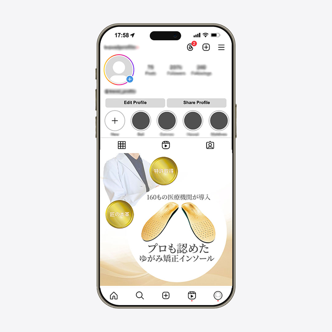 高級インソールのバナー(サンプル)制作 2025年11月21日 最終更新日時 : 2025年11月28日 yukinko ターゲット:老若男女、外反母趾などで悩んでいる人 目的:FacebookなどSNSで広告 デザインの説明:医療機関機関にも採用され、特許取得もしているので、権威性・信頼感を出し、遷移先のLPにイメージを近づけました。 Photoshop使用